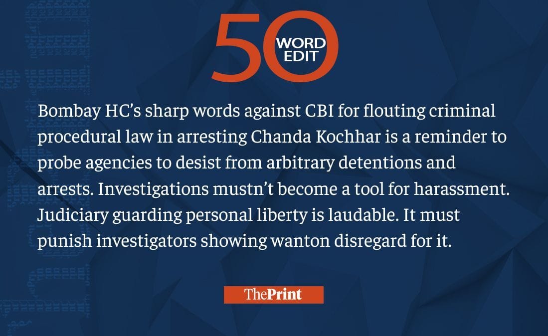 HC words against CBI in Chanda Kochhar case a reminder for agencies to desist from arbitrary arrests