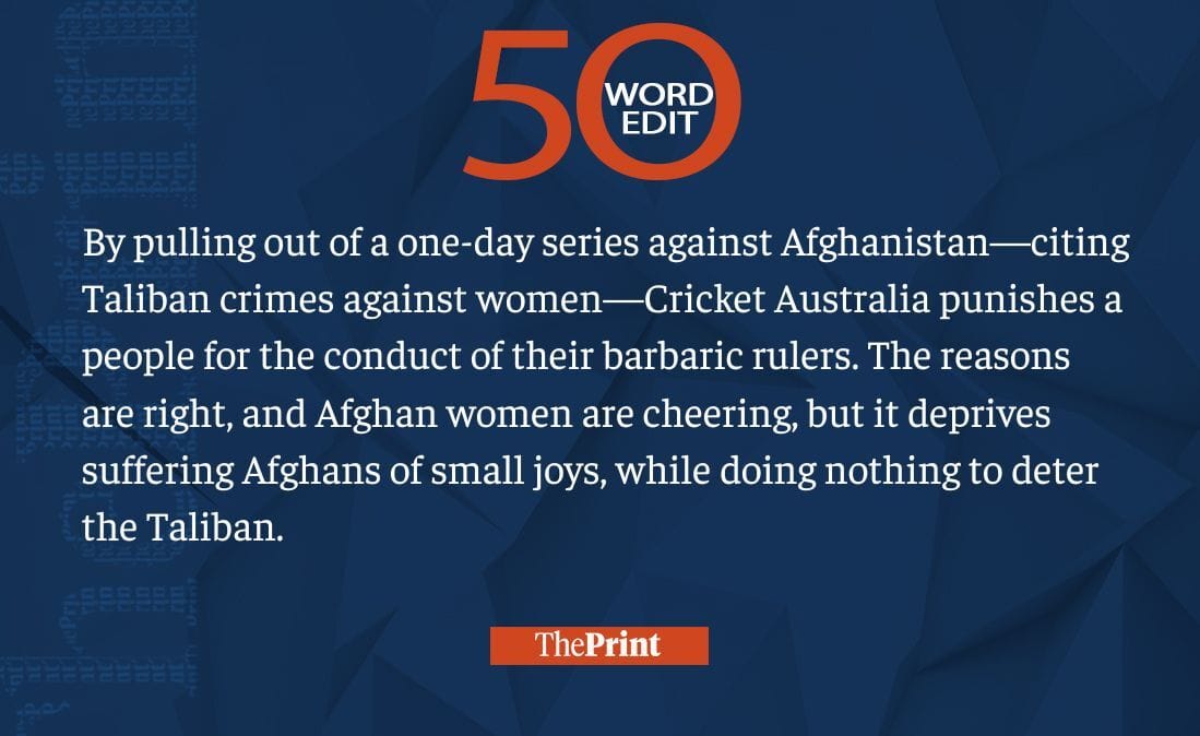 Australia not playing Afghanistan deprives Afghans of small joys, doesn’t punish Taliban