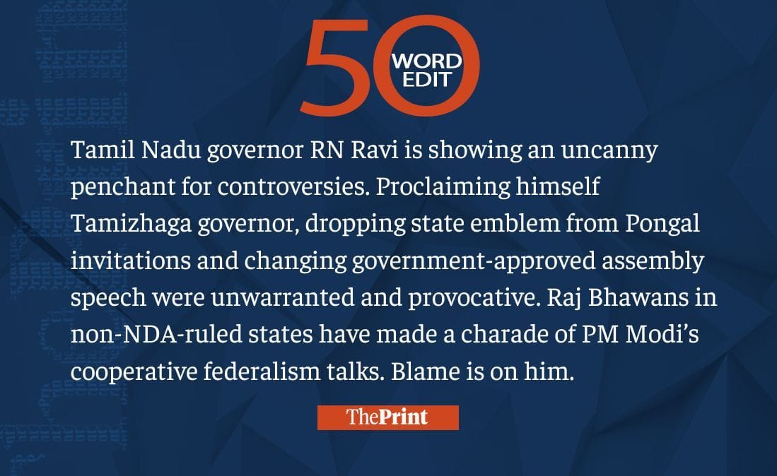 Tamil Nadu governor’s unwarranted acts make a charade of Modi’s cooperative federalism talks