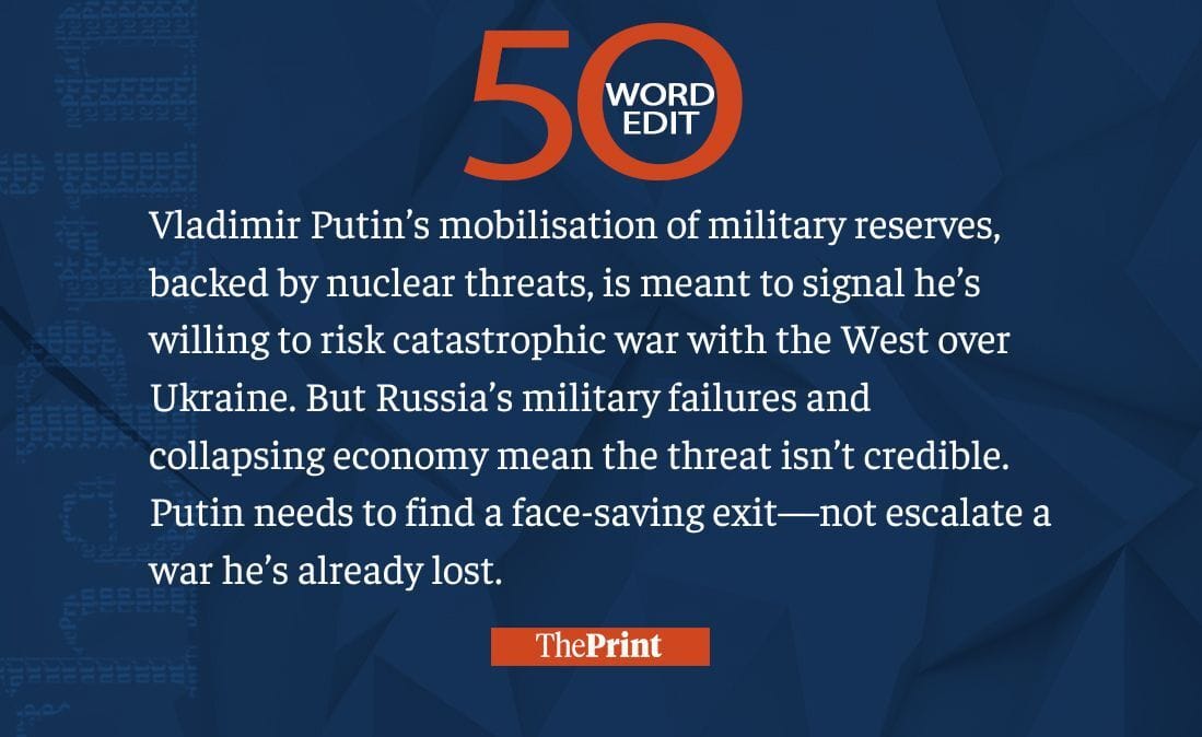 Putin needs to find a face-saving exit from Ukraine. Not escalate a war he’s already lost