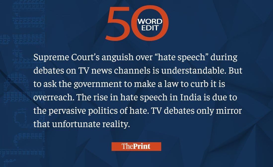 SC asking for law to curb hate speech on TV news is overreach. Problem lies in politics of hate