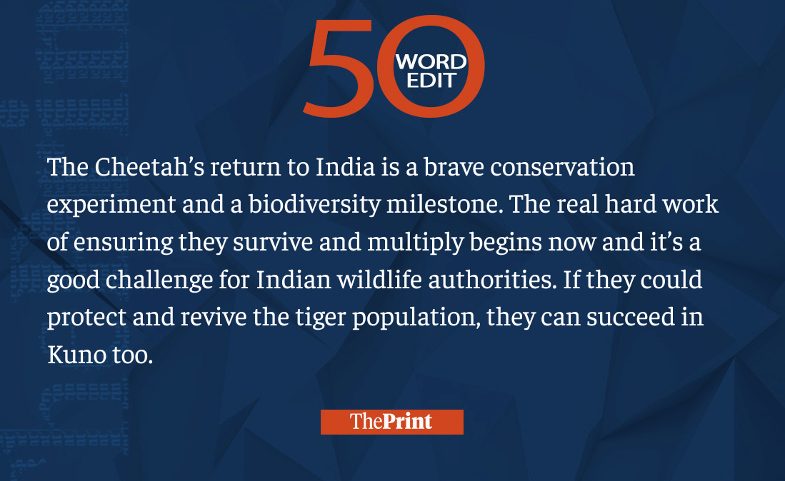 Cheetah’s return is biodiversity milestone. Real work begins now in Kuno—making them survive