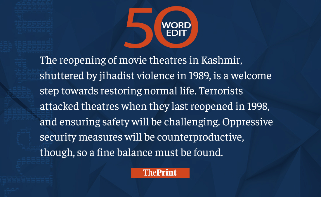 Reopening theatres in Kashmir a good move. But fine balance must be found to ensure security