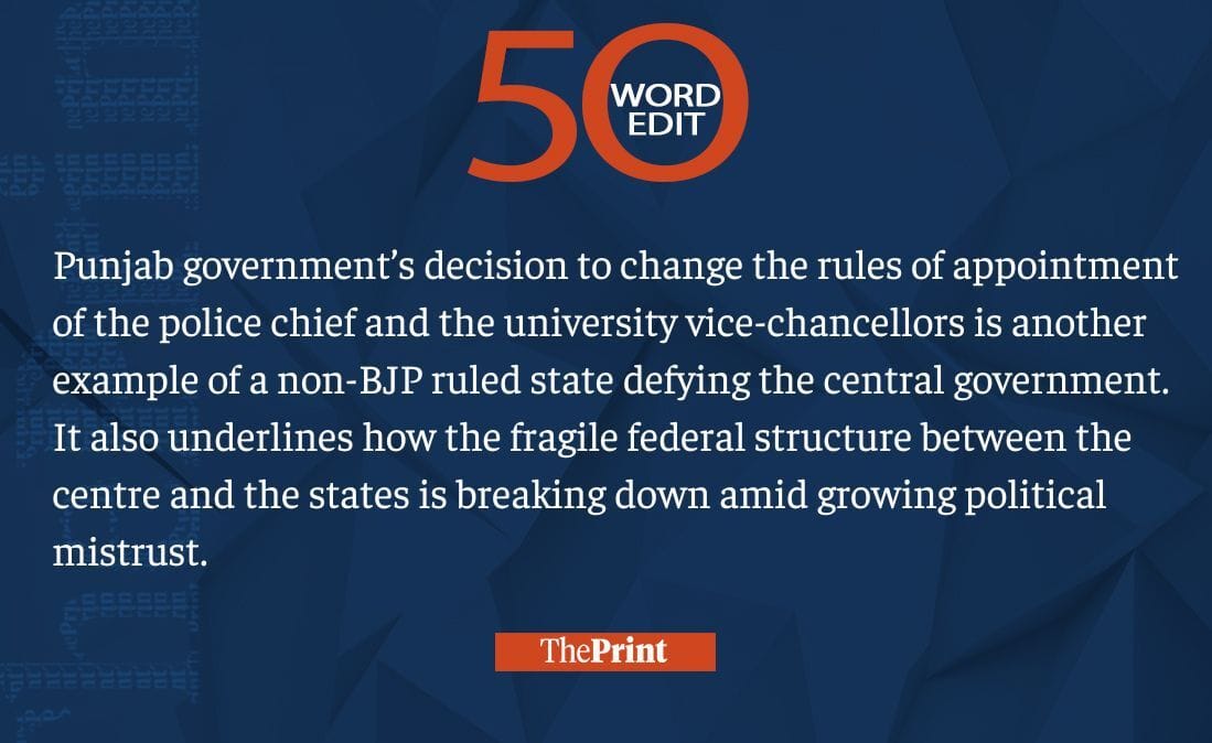 Punjab govt amending rules of appointment of DGP shows fragility of federal structure