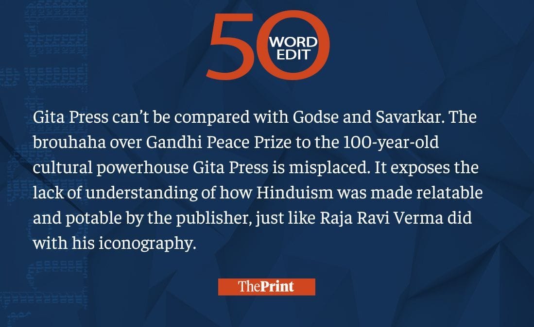 Gita Press can’t be compared to Godse, Savarkar. Brouhaha over Gandhi Peace Prize is misplaced