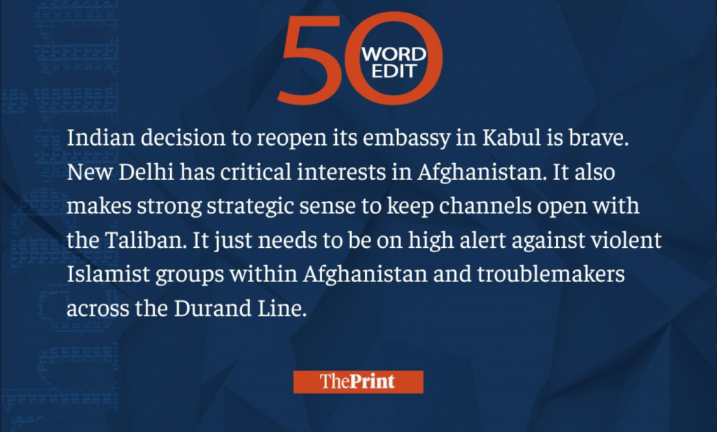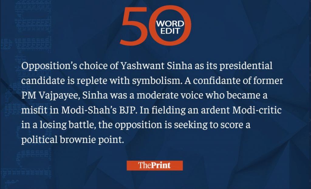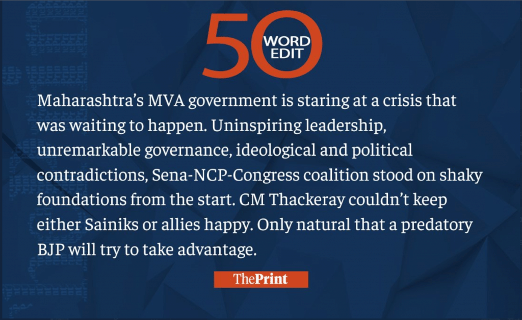This week, we saw India’s presidential candidates being revealed, the MVA government in Maharashtra facing internal rebellion, a tragic Afghanistan earthquake, and India reopening its embassy in Kabul. Read our 50-word editorials on them and much more.