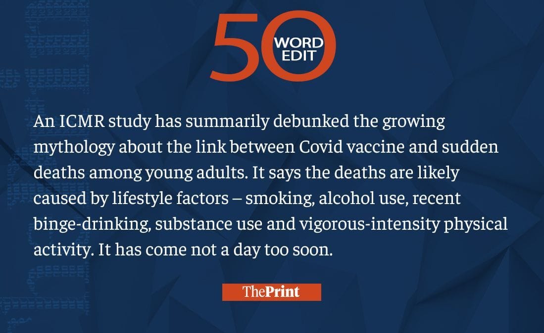 Timely ICMR study debunks myth about link between Covid vaccine and sudden deaths of young adults