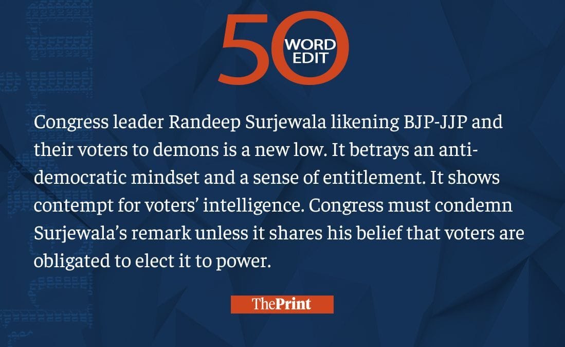 Randeep Surjewala’s demonisation of BJP-JJP voters shows anti-democratic mindset. Congress must condemn
