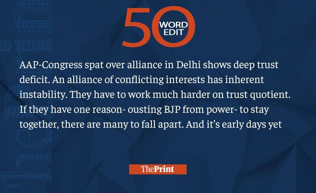 AAP-Congress spat shows deep trust deficit. Ousting BJP can’t be only reason for alliance