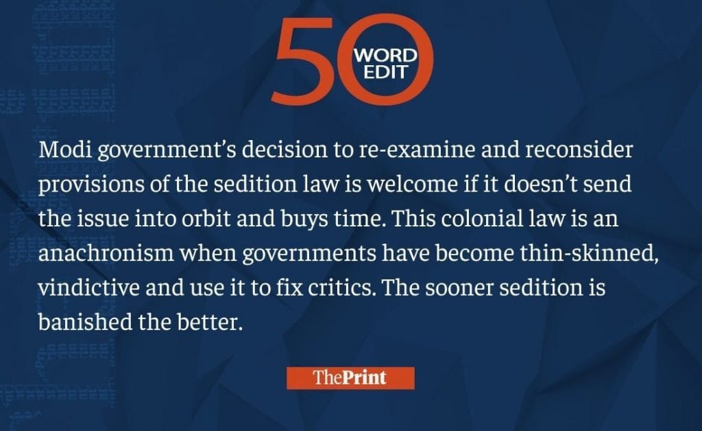 Modi govt right to re-examine sedition provisions. The sooner this colonial law is banished the better