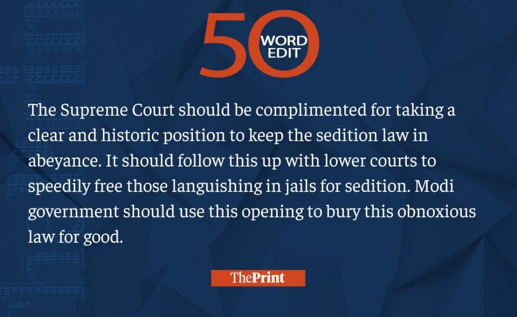 SC’s suspension of sedition law historic. Modi govt must use this opening to bury it for good