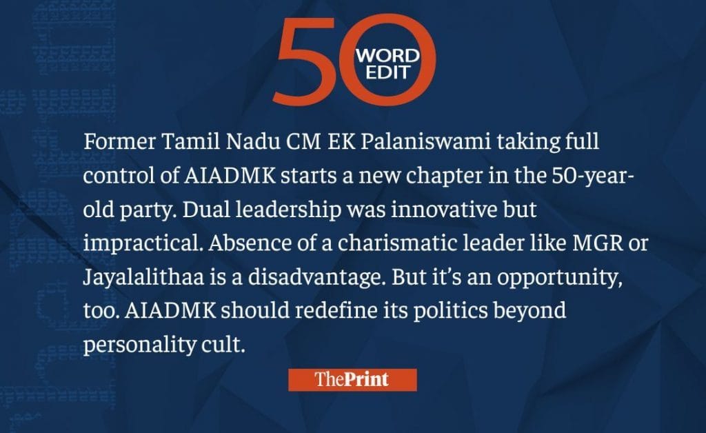 Palaniswami’s takeover is a new chapter for AIADMK. It’s time to move beyond personality cult