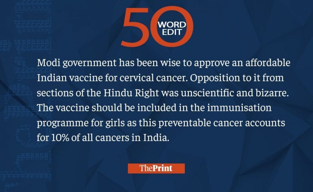 Modi govt wise to approve vaccine for cervical cancer. Hindu Right’s opposition bizarre