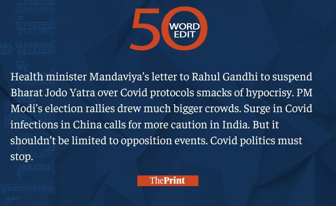 Mandaviya’s letter on Bharat Jodo Yatra smacks of hypocrisy. Covid politics should stop