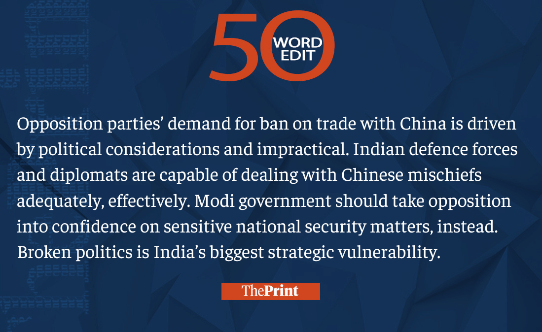 Calls for trade ban with China impractical. Indian defense forces, diplomats capable and effective