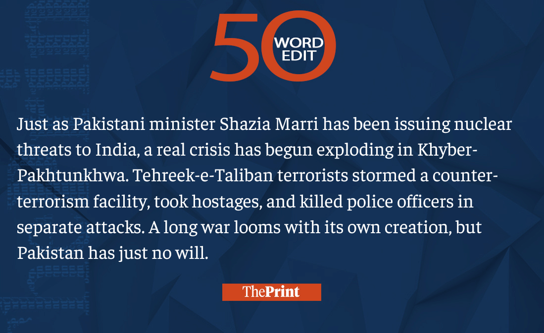 Pakistan issuing nuclear threats to India but has no will to fight its Khyber-Pakhtunkhwa crisis