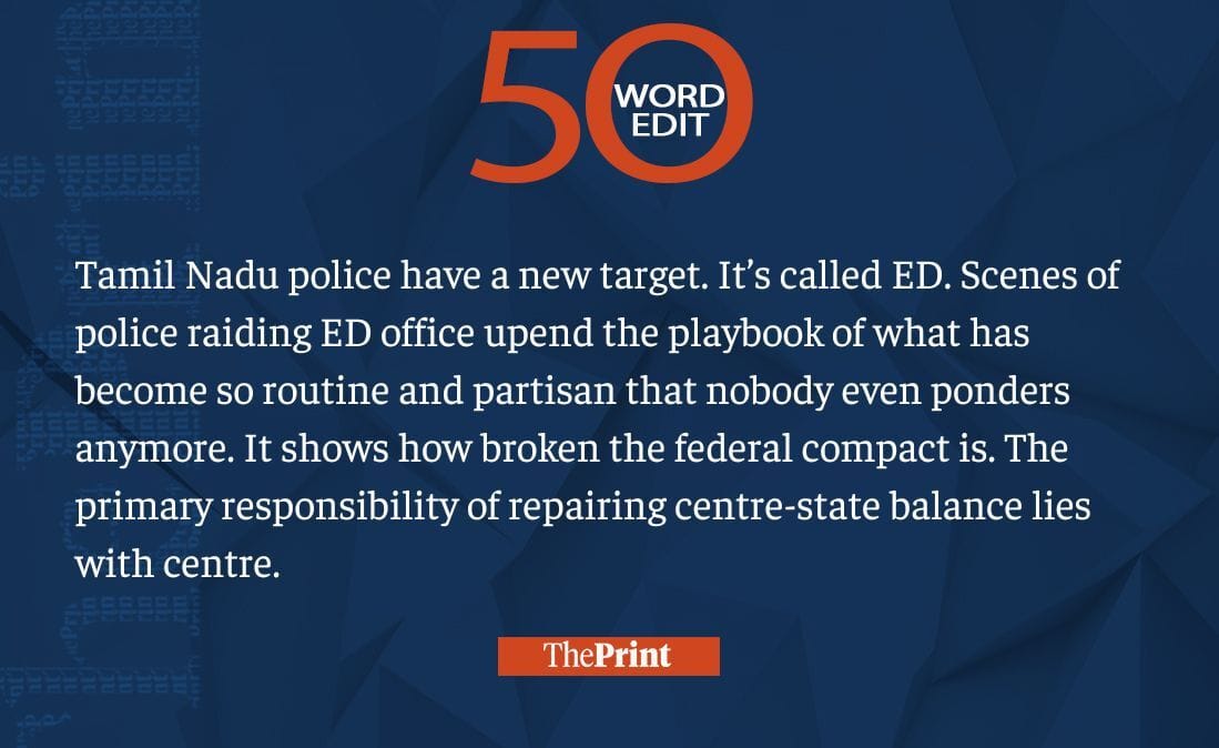 Tamil Nadu cops raiding ED office shows how broken the federal compact is. Centre must fix it