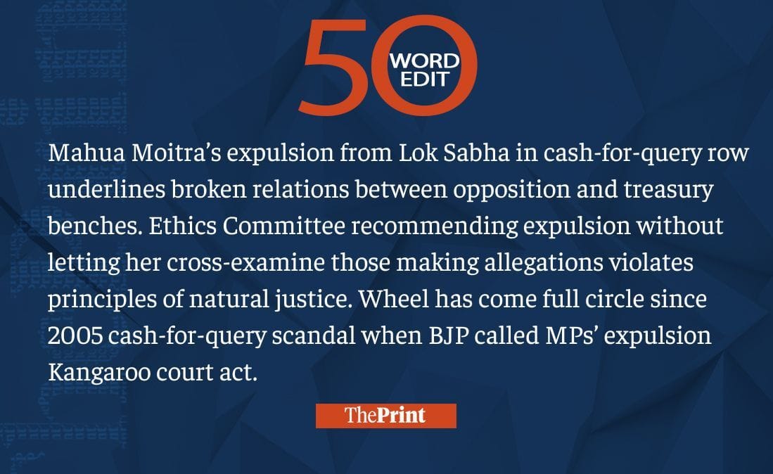 Mahua Moitra’s expulsion without letting her cross-examine violates principles of natural justice