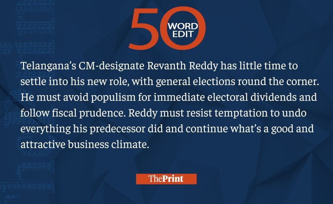 Telangana CM-designate Revanth Reddy must avoid populism and follow fiscal prudence