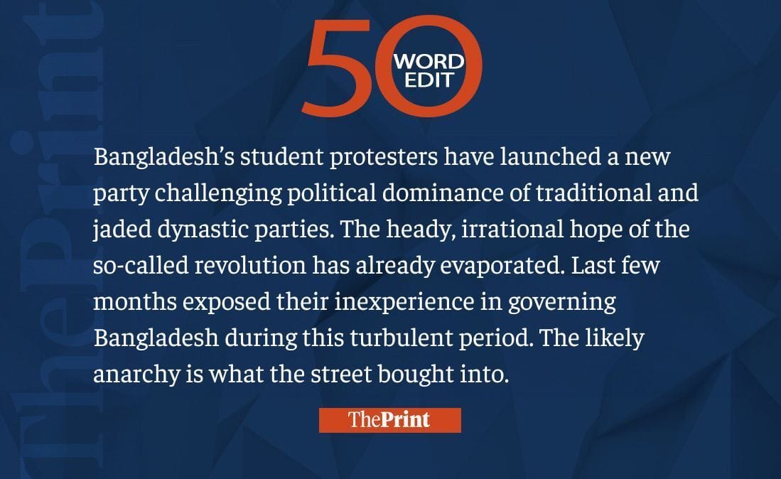 This week, student protesters in Bangladesh launched a new party, Q3 GDP data revealed the state of India’s manufacturing sector, and US President Donald Trump praised UK PM Kier Starmer’s accent. Read our 50-word editorials on them and much more.