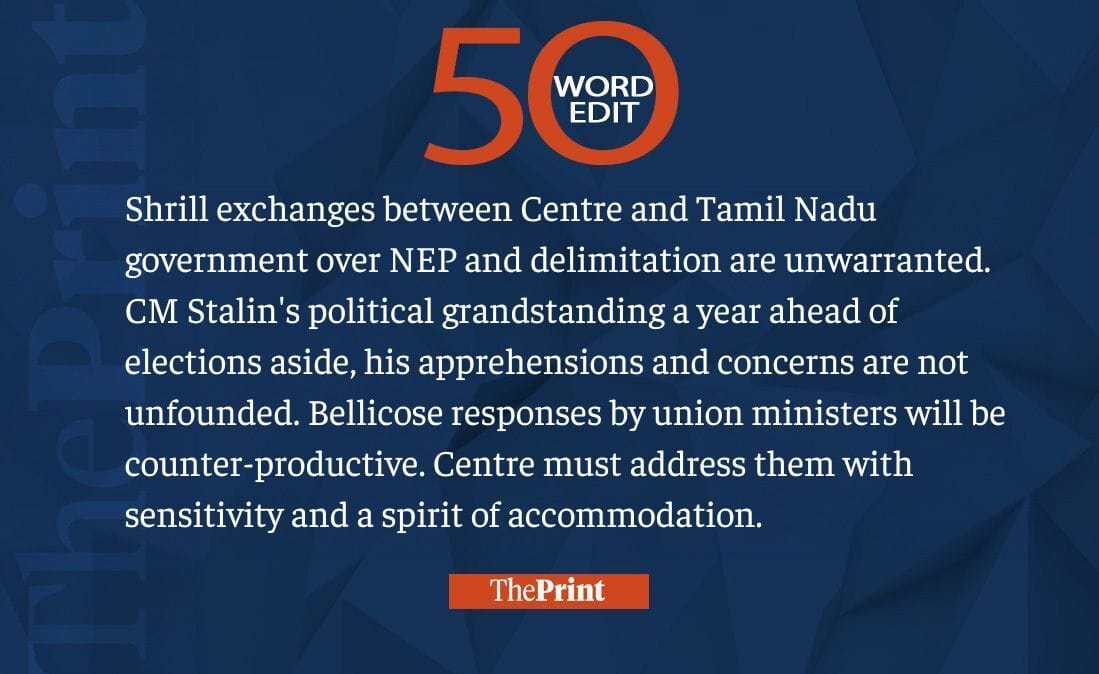 Centre must address Tamil Nadu’s concerns over NEP, delimitation. Shrill exchanges unwarranted