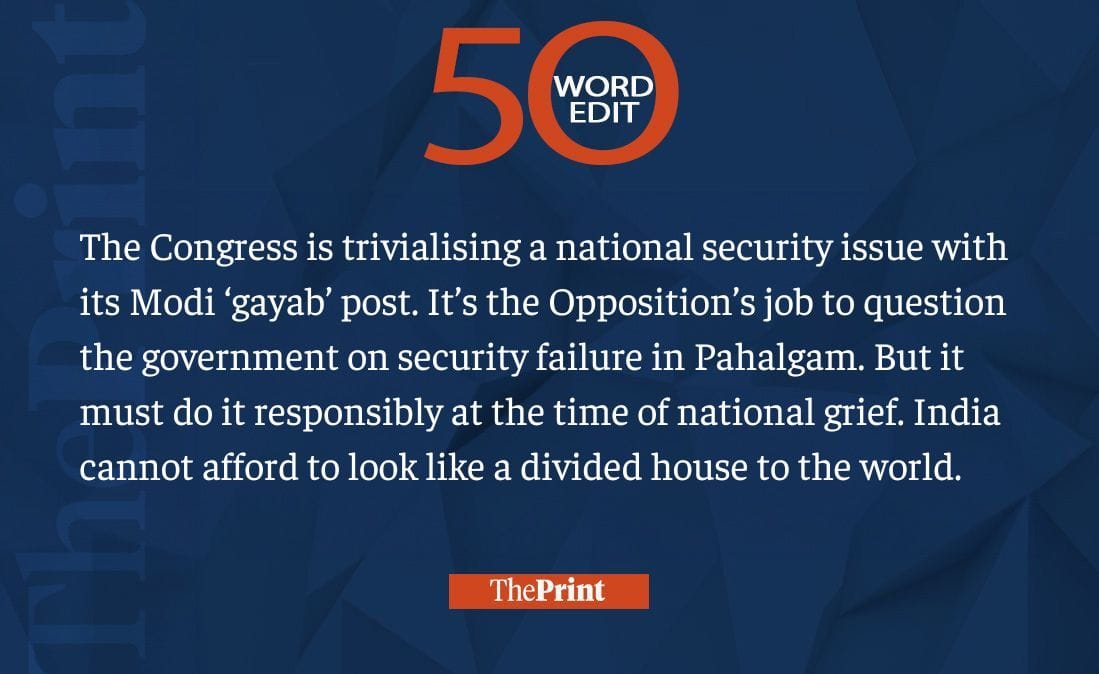 Congress’ Modi ‘gayab’ post trivialises national security. India can’t look divided to world