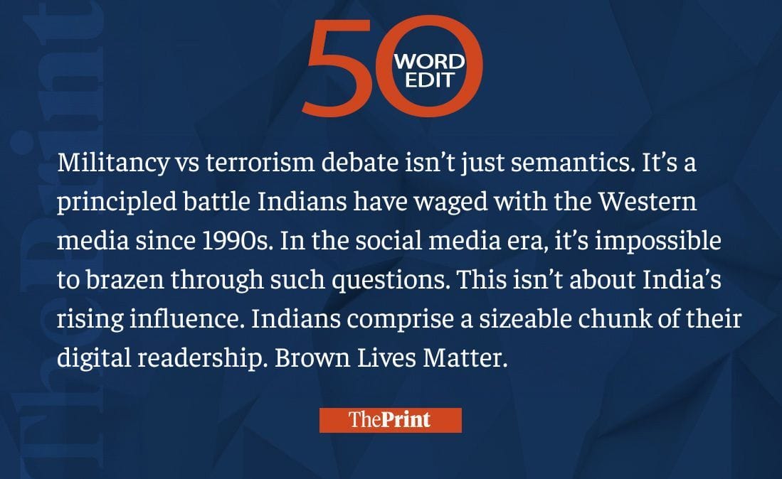 Militancy vs terrorism a principled battle for Indians. Western media can’t brazen through anymore