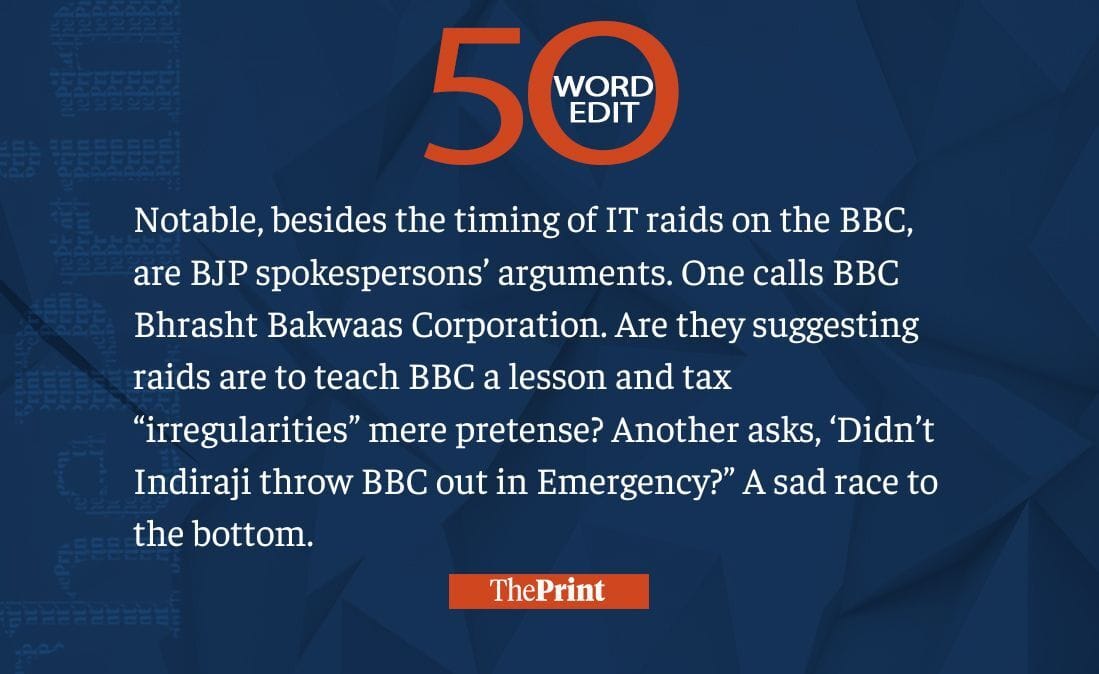 Not just the timing of BBC IT raids, BJP spokespersons’ arguments make it more suspect