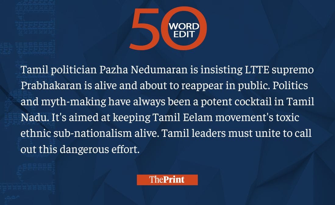 Nedumaran saying Prabhakaran’s alive aims to keep Tamil Eelam nationalism alive. It’s dangerous