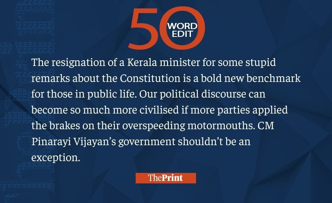 Kerala minister resigning over Constitution remark is bold benchmark. Should apply pan-India