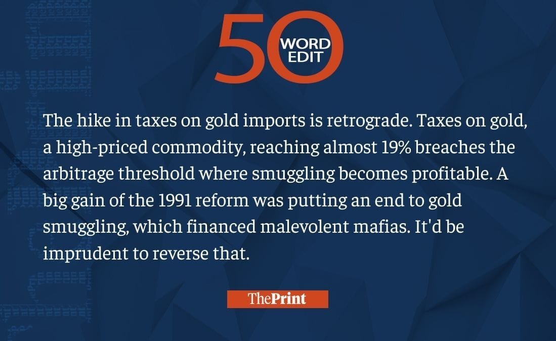 Hike in gold import tax reverses benefits of 1991 reform. It’ll make smuggling profitable again