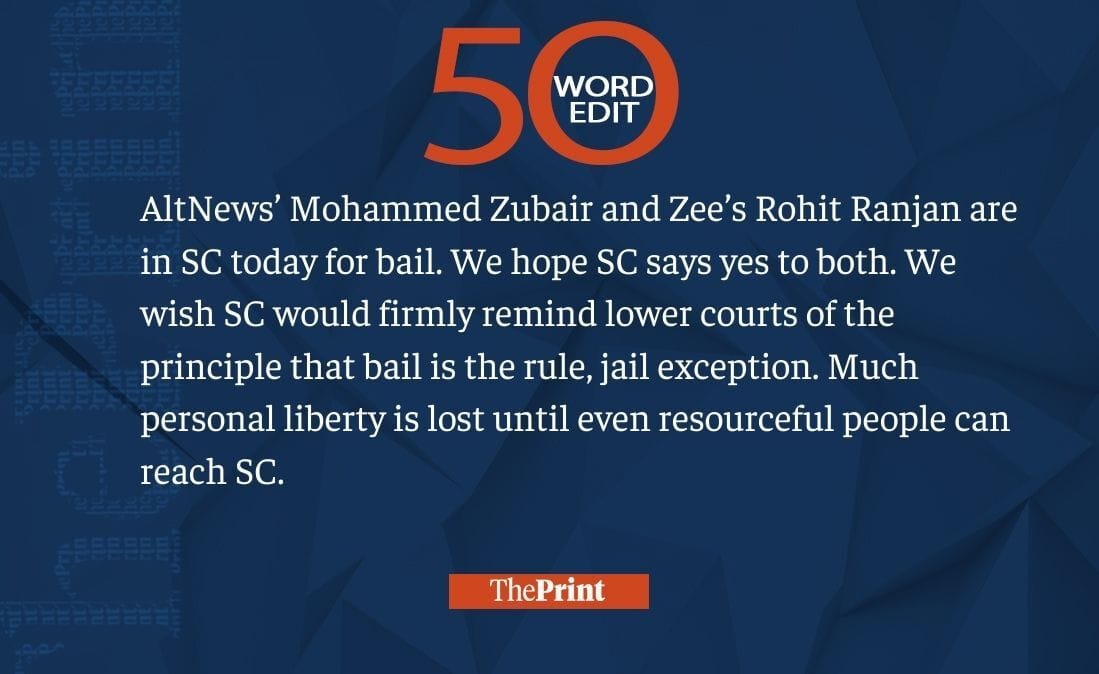 If SC gives bail to Zubair and Ranjan, lower courts will know bail is rule, jail is exception