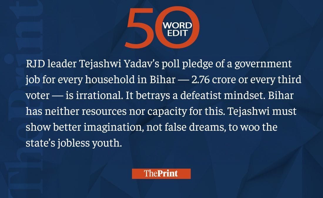 Tejashwi Yadav needs to show better imagination, not false dreams, to woo jobless youth