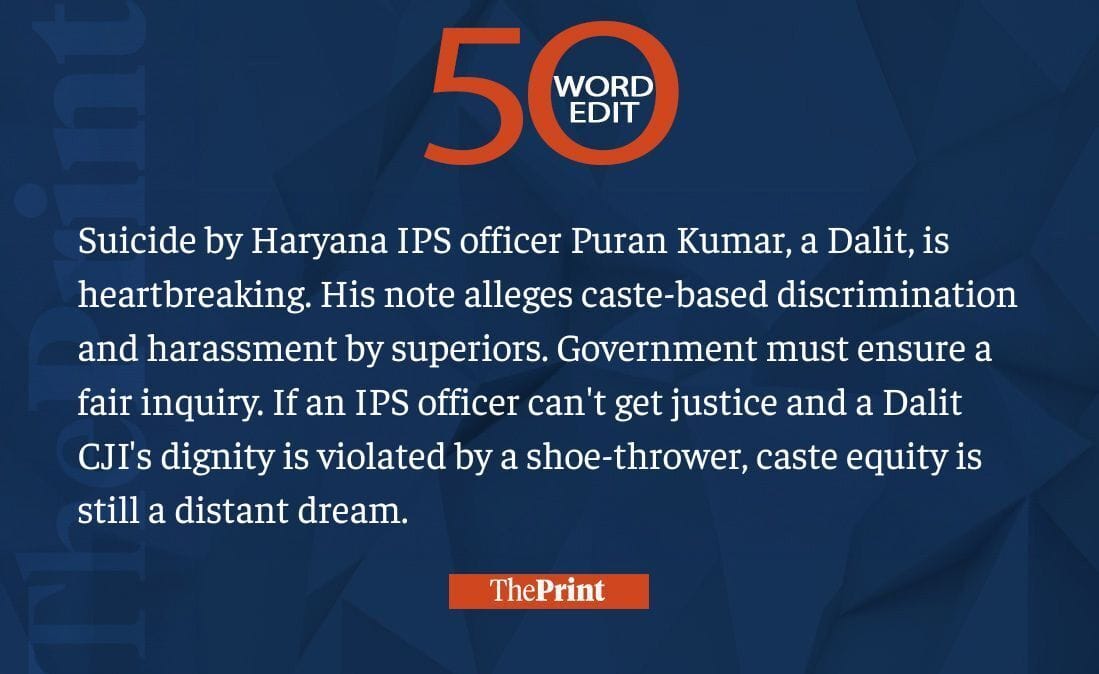 Suicide by Haryana IPS officer is heartbreaking. Govt must ensure fair inquiry