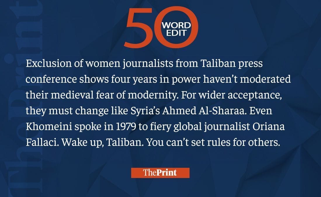 This week, we saw women journalists being excluded from Taliban press conference, India reopening its Kabul embassy, and a lawyer hurling a shoe at CJI BR Gavai. Read our 50-word editorials on them and much more.