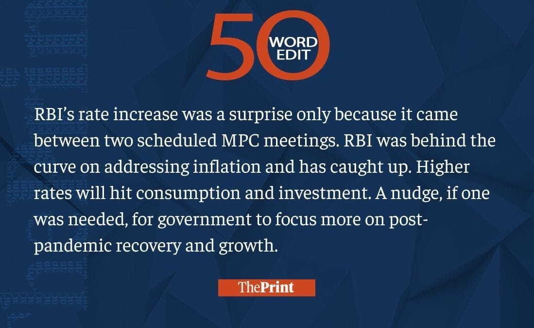 RBI catches up on addressing inflation. Rate hike a nudge to govt to focus on post-pandemic growth