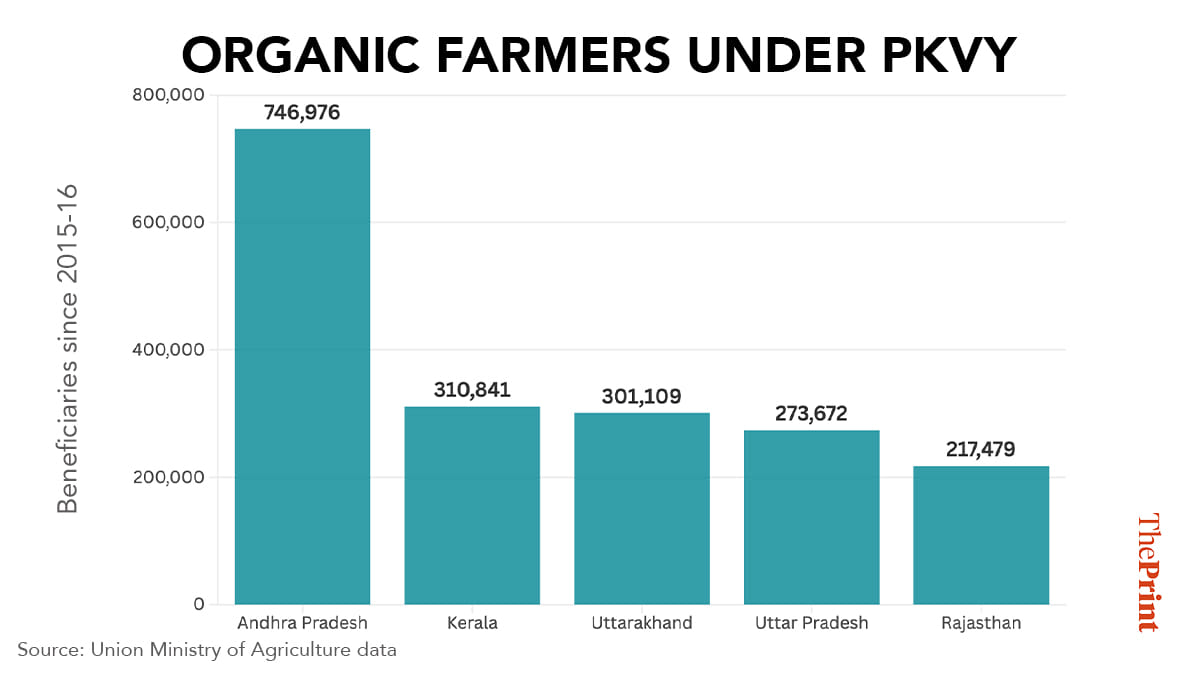 “One of the reasons behind this is that when the scheme started off, Andhra Pradesh already had a base of organic farmers and had the grassroots capacity to implement the scheme,” Ashish Gupta, director of organic food enterprise Jaivik Haat and an agricultural expert, told ThePrint.