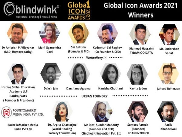 Bengaluru (Karnataka) [India], May 28 (ANI/NewsVoir): Global Icon Awards – 2021 has been organised by Blindwink to recognise the various organisations and companies, entrepreneurs and service providers for their outstanding performance and achievements in their respective fields.