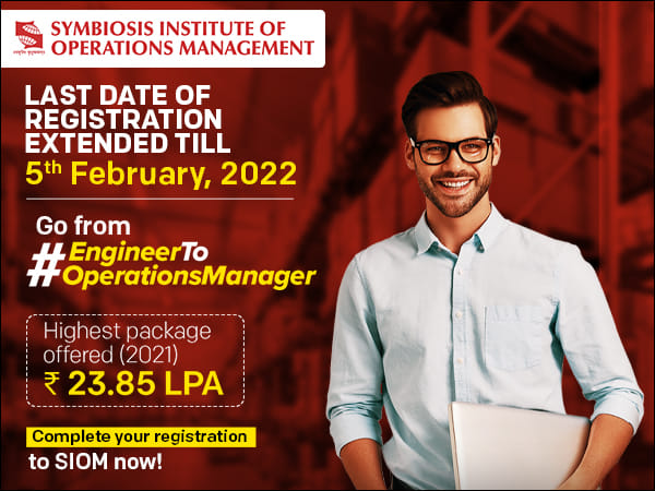 New Delhi [India], February 3 (ANI/SRV): With the recent announcement of Symbiosis National Aptitude Test (SNAP) 2021 results, Symbiosis Institute of Operations Management (SIOM) Nashik, one of the nation’s leading educational institutes dedicated to empowering and leading operations excellence announces the last few days for aspirants to apply for their two flagship MBA programmes. In view of the current scenario, aspirants can register till February 5, 2022 by visiting the official website – https://bit.ly/3HokOuw