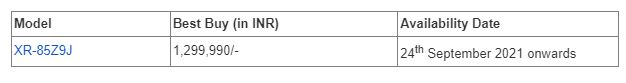 The BRAVIA XR MASTER Series 85Z9J television will be available across Sony retail stores (Sony Center and Sony Exclusive), www.ShopatSC.com portal, major electronic stores and other e-commerce websites in India.