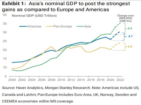 Strength in exports and capex has lifted Asia’s overall GDP closer to its pre-Covid path, but consumption remains below its pre-Covid path, it said in a research report titled ‘The Viewpoint: The Next Phase in Asia’s Recovery’ authored by Chetan Ahya, Derrick Y Kam and Jonathan Cheung.