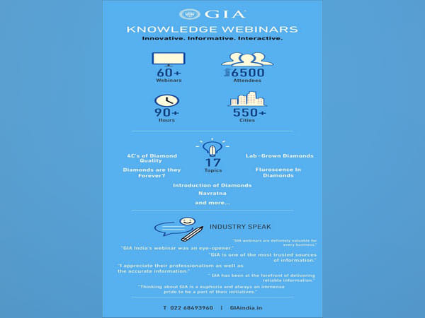 Mumbai (Maharashtra) [India], July 29 (ANI/BusinessWire India): GIA India is empowering the gem and jewellery trade with the latest industry knowledge and advancing its consumer protection mission with more than 60 knowledge webinars that were delivered complimentary.