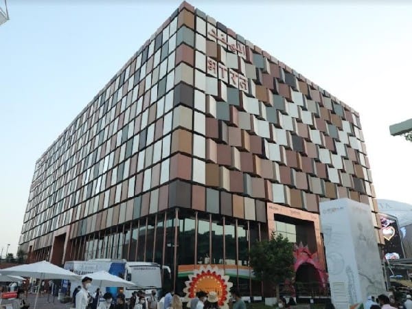 The external facade of the India Pavilion is made of 600 individual colourful blocks and is capable of kinetic movements symbolizing the theme – India on the move. The visitors also get to experience the immersive AI and VR technology at the Pavilion which transports them to a virtual India. While the traditional Indian elements showcase the rich cultural and traditional heritage of our nation, the modern architectural concepts display, economic and scientific capabilities of India.