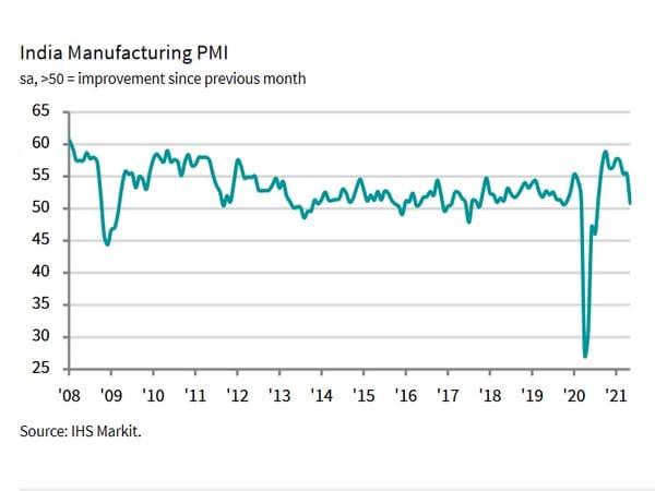 At 50.8 in May, down from 55.5 in April, the seasonally adjusted IHS Markit India Manufacturing Purchasing Managers’ Index (PMI) moved closer to the no-change mark of 50.