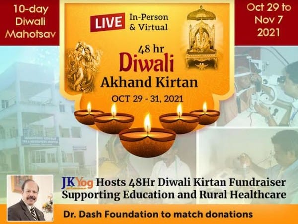 Shreya Bhat, JKYog President, shared, “Diwali symbolizes the victory of good over evil within our own hearts. A great way to develop love and compassion for humanity at large is service to the underprivileged. When we extend ourselves to help others in need, we recognize their suffering and grow in empathy to make the world a more peaceful and happy place for all. It is with this vision that JKYog has organized this 48 Hr Akhand Kirtan event. We are grateful to Dr. Dash Foundation for their generous and enthusiastic support of this initiative.”