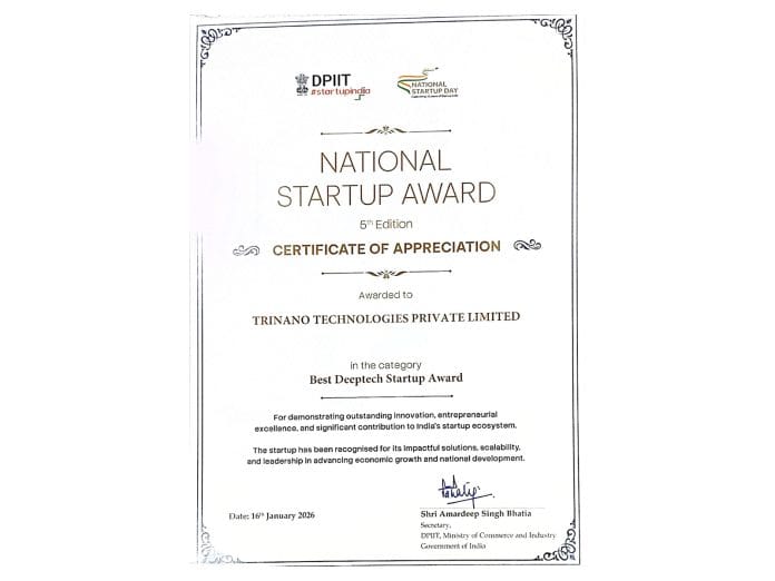 Mumbai (Maharashtra) [India], February 5: TriNano Technologies Pvt Ltd, a SINE IIT Bombay-incubated startup, has been recognized as a frontrunner in India’s green energy revolution. On January 16, 2026, at the prestigious National Startup Day celebrations, TriNano was honored with the Best Start-up award in Deep tech category for its groundbreaking work in solar efficiency. The event was marked by a significant interaction between the TriNano leadership and Honorable Prime Minister Shri Narendra Modi, who reviewed the startup’s contribution to India’s renewable energy goals.
