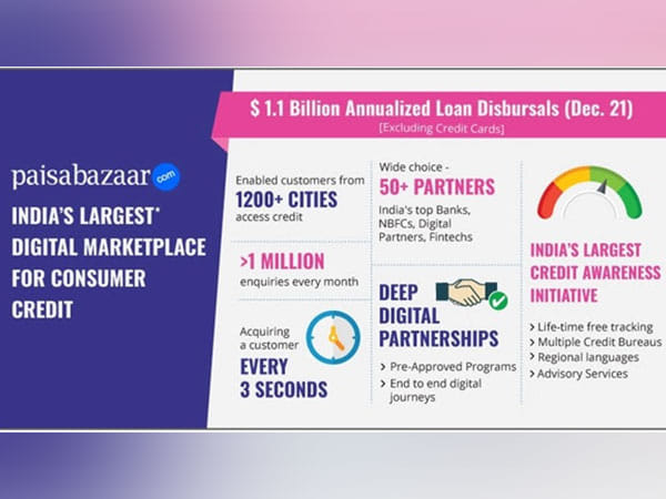 Gurugram (Haryana) [India], January 13 (ANI/NewsVoir): Paisabazaar.com, India’s largest* digital marketplace for consumer credit, announced today that it has reached an annualised loan disbursal rate of $ 1.1 billion (excluding credit card issuance).