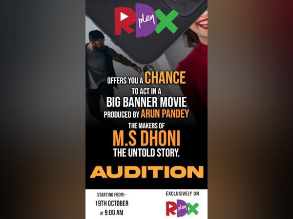 New Delhi (Delhi) [India], October 19 (ANI/NewsVoir): RDX Play, India’s own short video platform has announced exclusive auditions across India to hunt for new talent. RDX Play is a platform dedicated to catering to young talent & helping them to turn their dreams into reality. The shortlisted candidates will get an opportunity of working with the makers of MS Dhoni – The Untold Story in the upcoming movies. This quintessential opportunity will provide a massive stage to those who have a knack for the art of acting & will help them to showcase their talent on a global stage.