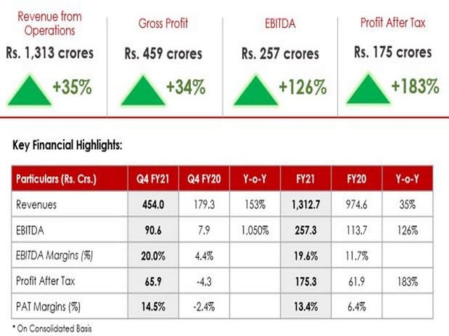 For FY21, Revenues increased by 35% whereas EBITDA & PAT increased significantly by 126% and 183% respectively. During the year, our Working Capital has reduced by 54 days to 165 days. Going ahead, we expect collection efficiencies which would reduce Working Capital further.
