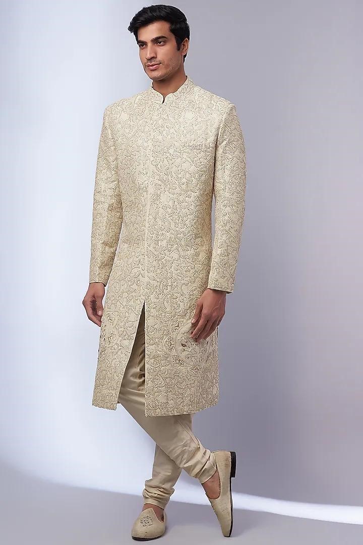 This is attire for men who see clothing as legacy. While not experimental in silhouette, Sabyasachi excels in emotional storytelling. His menswear is ceremonial, heirloom-worthy, and deeply rooted in nostalgia, making it a powerful choice for landmark life events.